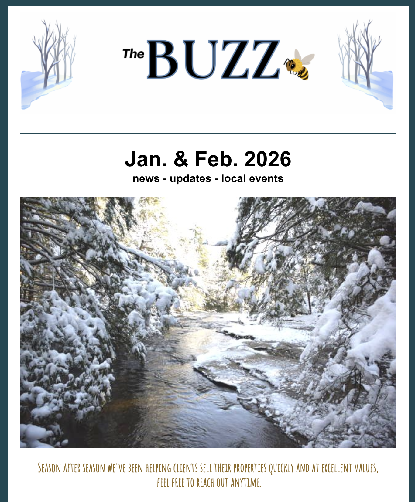 Buying or selling a home can be overwhelming. Let us help by sending you “The Buzz”, a specially curated email each month with new listings, market updates, and local happenings, all designed to keep you in the loop. Email us at info@rinehartrealtors.com or click the button below to be added to the list!